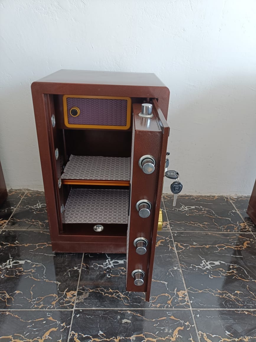 Our 60kgs safebox comes with a dual alarm system, the alarm will be issued when the thief enter wrong password 3 times or your safe is hit hard.