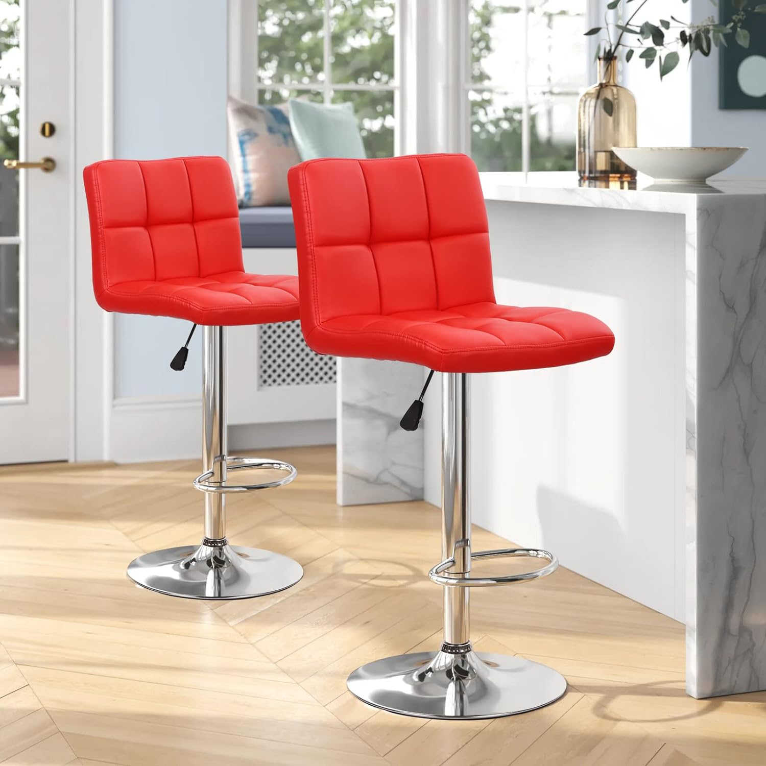 The Red Swivel barstool suitable many occasion. Whether sidled up to the kitchen island or grouped around the home bar these bar stools always makes the perfect perch. The counter bar stools will bring you a happy day!